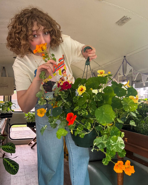 Her family is woven into every part of the business. Her dad helped build the greenhouse and designed the shelving inside the bus, while her mom has become a familiar face to customers, helping manage crowds on busy weekends in her unofficial role as “Bus Bouncer.”